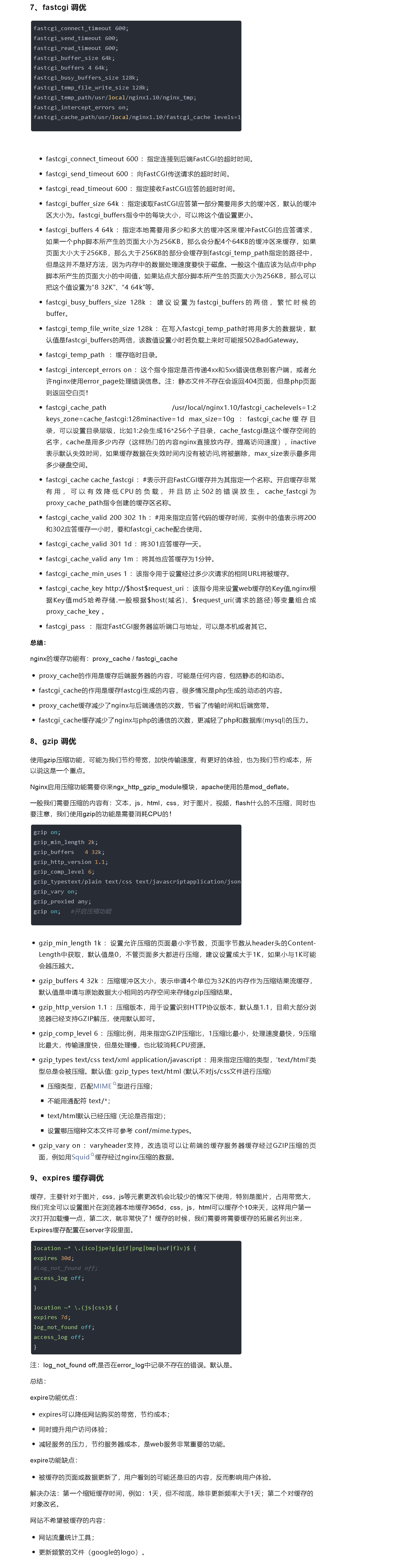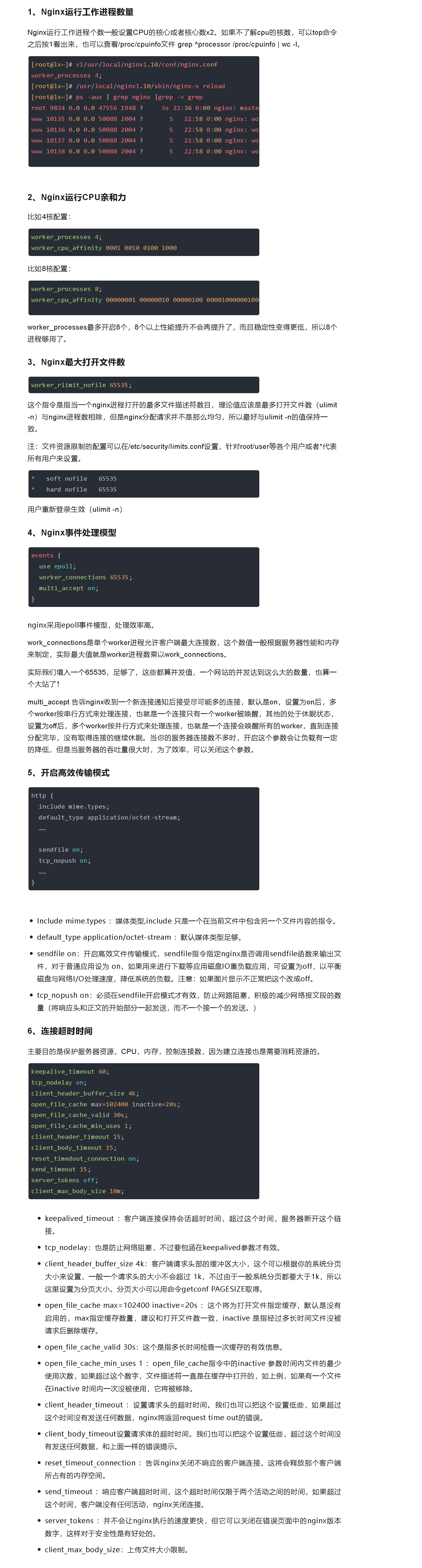 Nginx1、nginx 隐藏版本信息Nginx配置文件nginx.conf中,在http模块添加如下内容 http{ ··· server_tokens off; ··· }重新加载Nginx配置 nginx -t nginx -s reload2、Nginx性能优化作者:wiki 创建时间:2024-09-19 09:58最后编辑:wiki 更新时间:2024-12-21 18:13